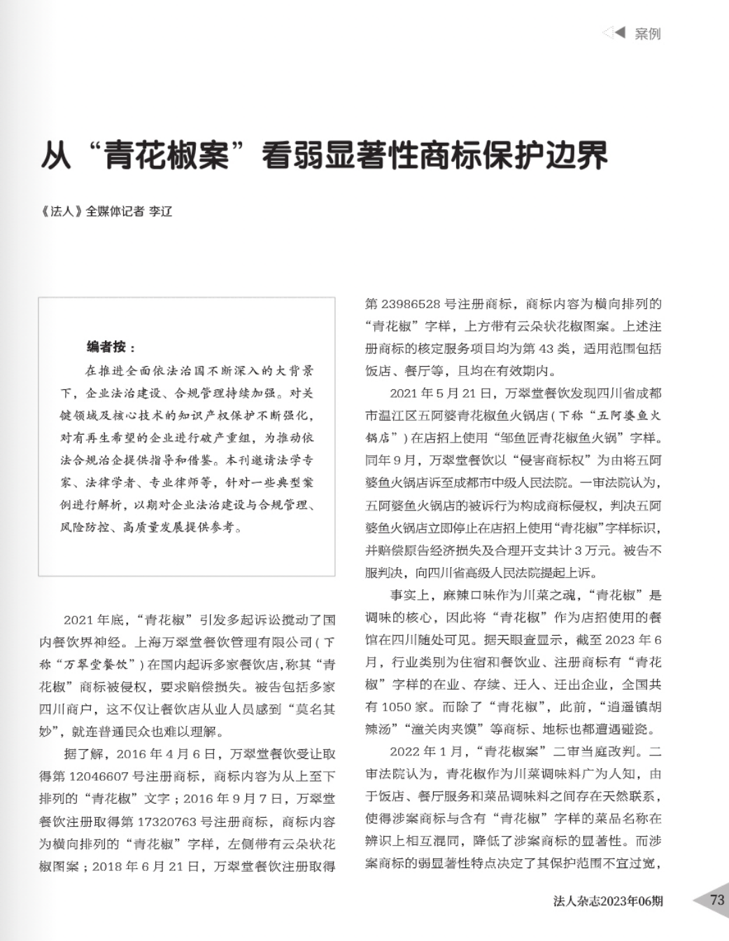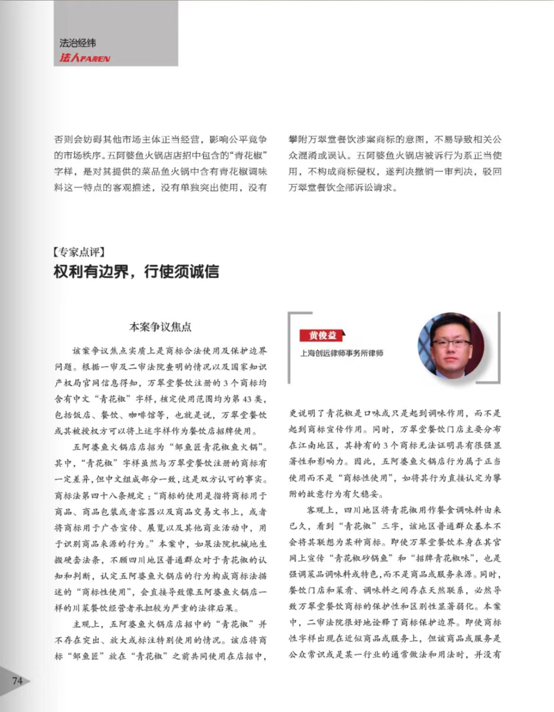 赤峰辉知简讯 | 辉知队黄俊益律师应“法治日报”旗下杂志邀请,就“青花椒”案发表专家点评
